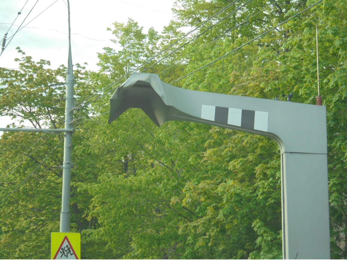 Кто-то изуродовал виселицу на Ботанической из центра. Она аж наклонена по ходу движения и немного развёрнута вокруг своей оси.