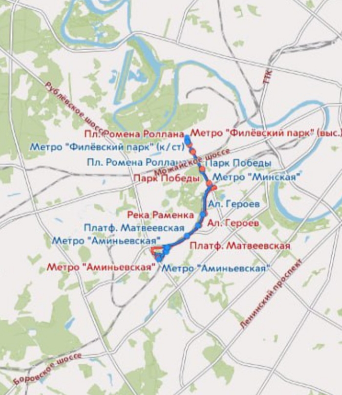 С сентября планируется организация нового маршрута "Метро "Филёвский парк" - "Метро "Аминьевскпя" по ул. Минская - Староволынская - Матвеевская - Аминьевское ш.