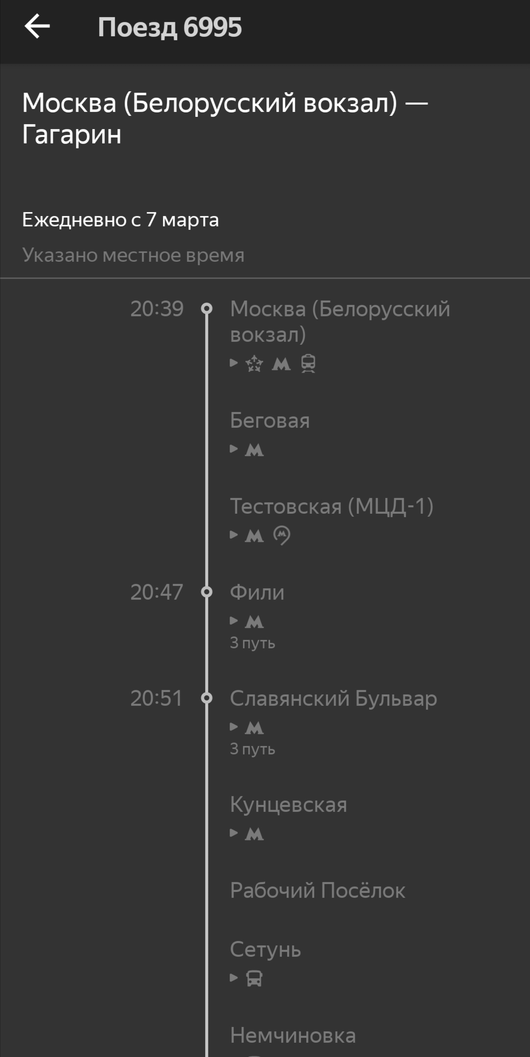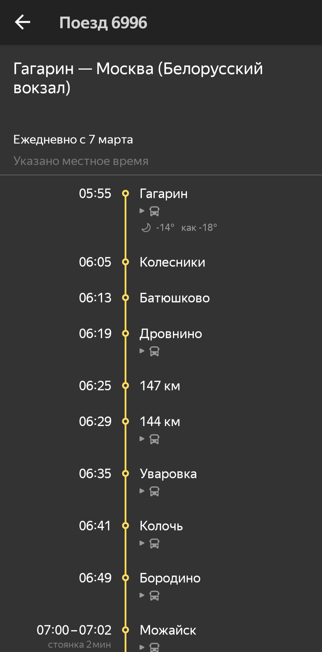 п. № 6996 Гагарин отпр. 05.55, Москва-пасс.Смоленская приб. 09.04
