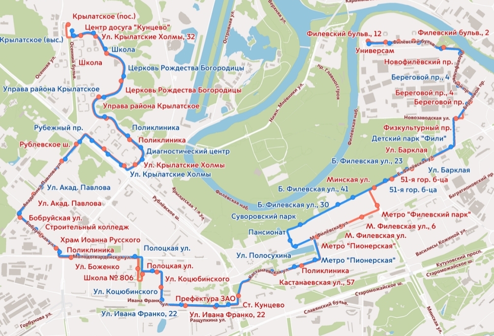 73-й маршрут с 1 июня 2021 года.... "Крылатское" - "Филёвский бульвар"...