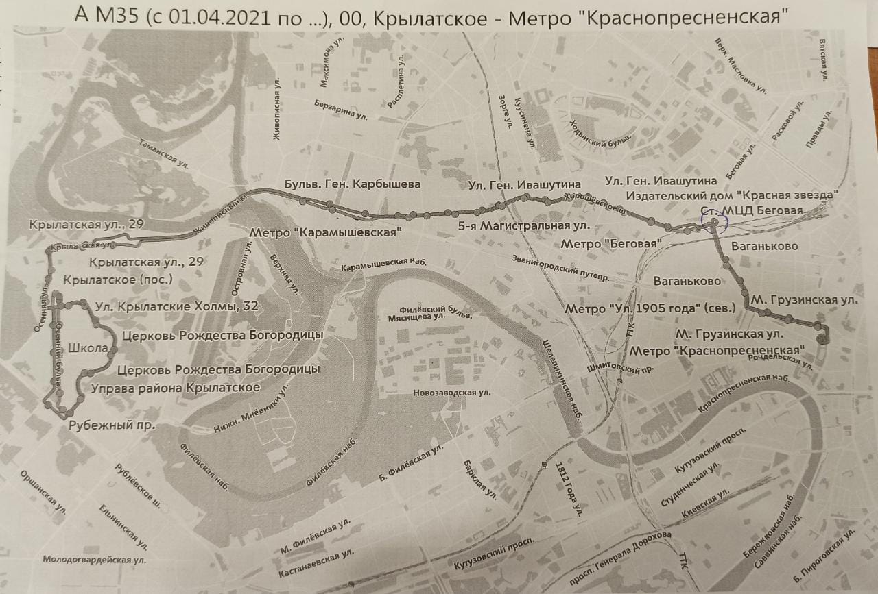 - появляется новый магистральный маршрут м35 от м. Краснопресненская до Крылатского.