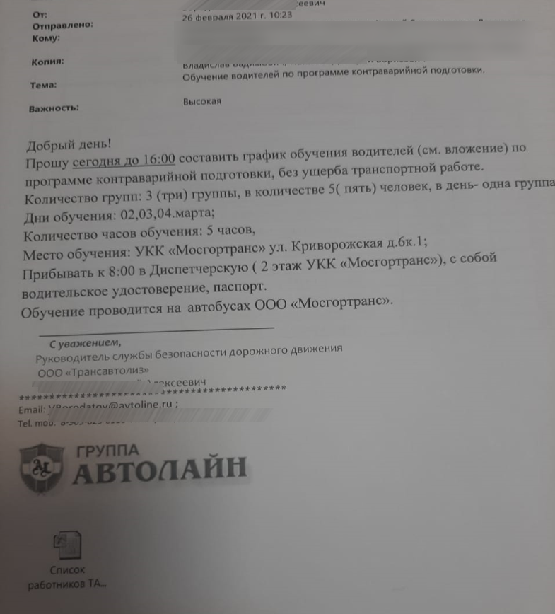 С "Трансавтолиза" стали в Мосгортрансовский УКК на контраварийную подготовку отправлять.