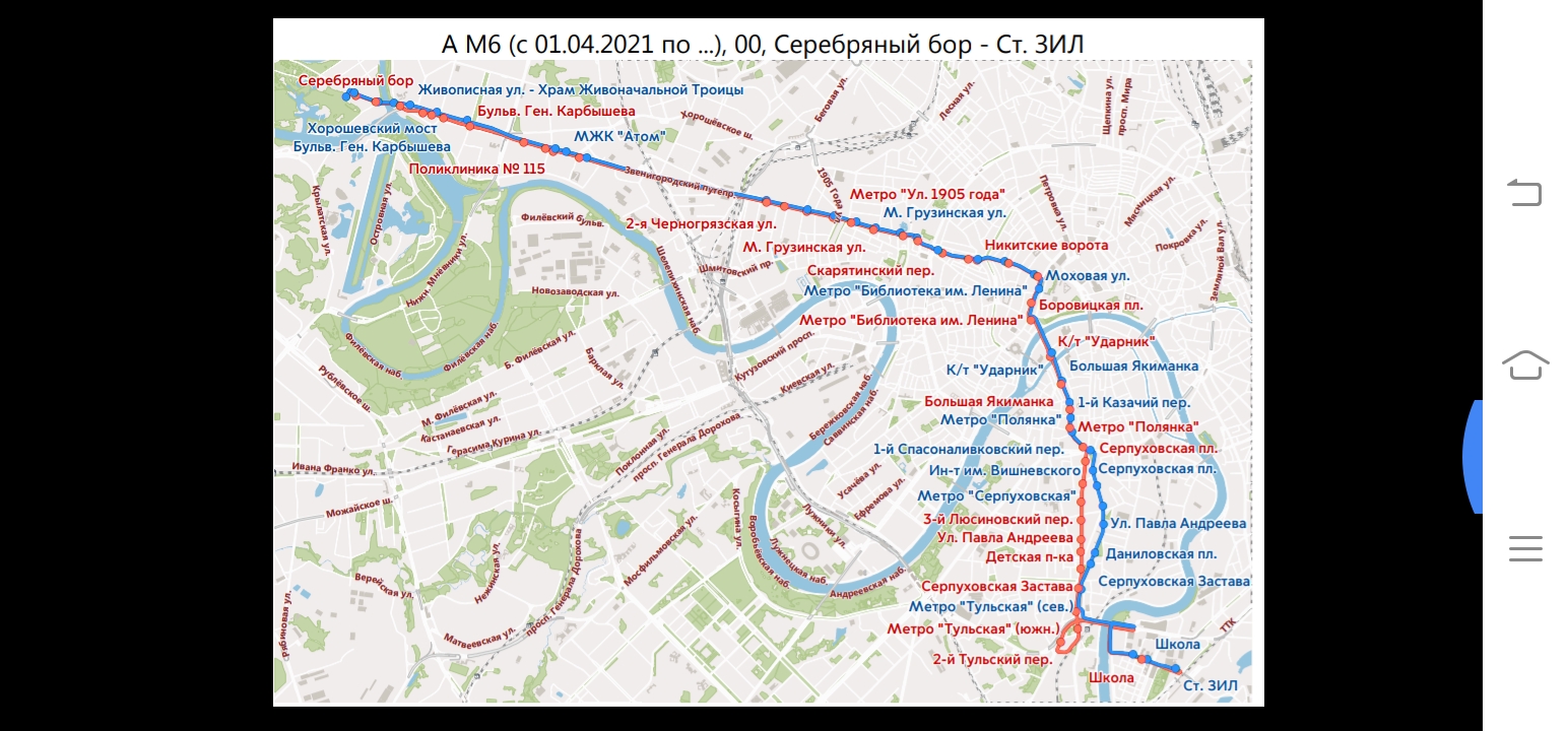 - м6 снова меняет конечную остановку, правда теперь с другой стороны. Вместо Силикатного з-да, поедет в Серебряный Бор.